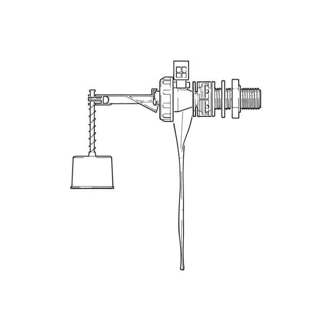 Torbeck® plastic equilibrium float valve with 1/2" BSP brass shank to fit side inlet toilet cistern.