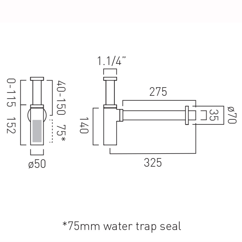 2. Features of Vado Contemporary Round Bottle Trap 1.1/4” with 35mm Outlet WG-461/RO-CP: