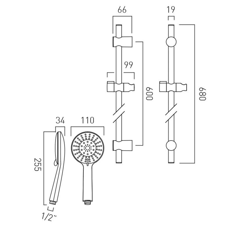 4 Function Slide Shower Rail Kit, finished in a high-shine polished chrome