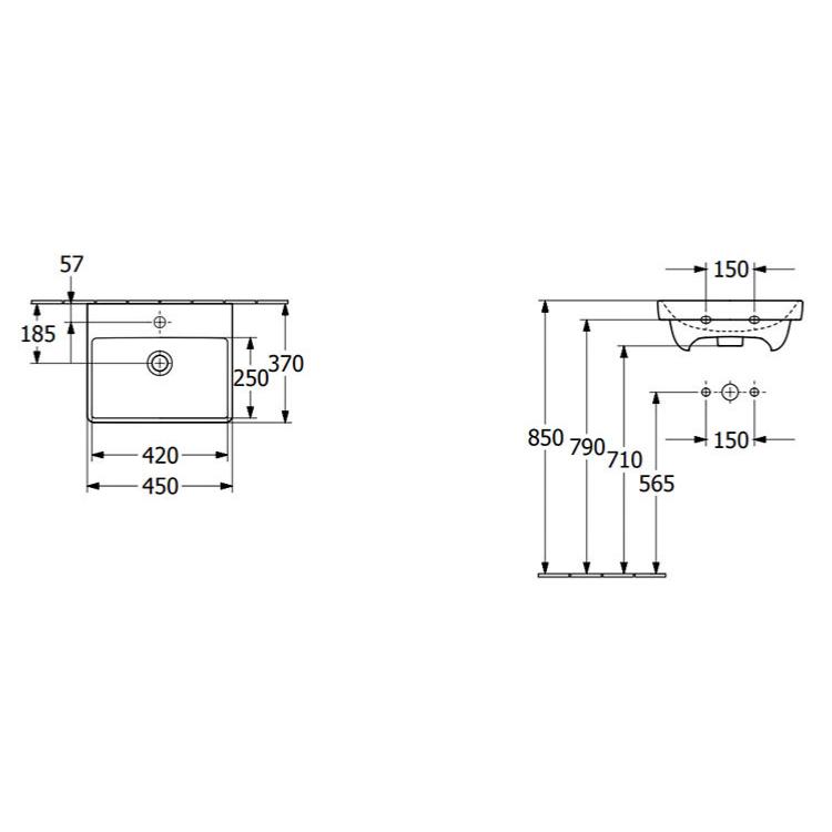 1. Description of Villeroy & Boch Avento 450 x 370mm 1TH Handwash Basin 73584501: