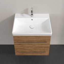 Villeroy & Boch Avento Oak Kansas 600mm Wall Hung 2-Drawer Washbasin and Vanity Unit SAVE09RH01 is an elegant addition to any bathroom. Featuring two spacious drawers created with a shock-absorbing, soft-close system for a silent and gentle closure every time, this vanity unit provides plenty of storage for all of your bathing needs.