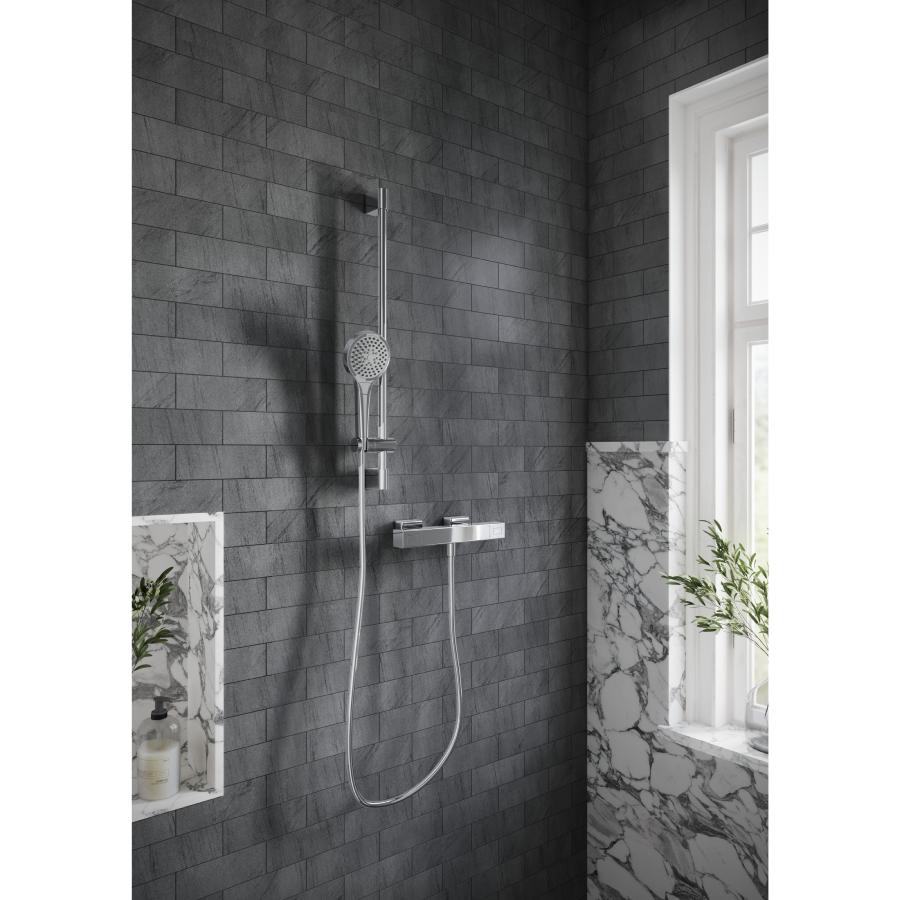 Elevate your bathroom with the sleek and sophisticated Villeroy & Boch Thermostatic Square Verve Shower Mixer Set, where luxury meets functionality. Engineered for both elegance and performance, the Verve Shower Mixer set is a pinnacle of fine design and innovative technology. Enjoy the perfect fusion of convenience and style with features that make every shower a divine experience.Key Features:Chrome Finish: A beautiful, high-gloss chrome finish that adds a touch of sophistication to any modern bathroom.Optimal Size: With dimensions of 317(w) x 65(h) x 104(d)mm, the shower mixer is designed to blend seamlessly into your shower space.Riser Rail: A robust 690mm riser rail provides flexibility and comfort for a range of heights.Comfortable Hand Shower: At a width of 114mm, the hand shower fits comfortably in your palm, making it easy to direct the water flow.Extended Shower Hose: A generous 1600mm hose length ensures maximum reach and maneuverability.Consistent Water Pressure: Designed to operate at a minimum of 1 bar for a steady and satisfying water flow rate of 6.98 l/min.Versatile Spray Functions: Choose from 3 dynamic spray functions to personalize your shower experience.Integrated Scald Protection: Set at 38°C to ensure a safe showering temperature and protect against accidental scalding.Innovation With CoolTap: The mixer features CoolTap technology, providing protection from scalding on the thermostat body – ideal for families with young children.Maintenance Made Easy: The hand shower comes with EasyClean nozzles, simplifying limescale removal and reducing cleaning time.Effortless Installation: This wall-mounted set is designed for easy installation, instantly upgrading your shower's aesthetics and function.Trusted Quality: Villeroy & Boch stand behind their craftsmanship with a reassuring 5-year guarantee.Experience the Epitome of Showering Comfort:The Villeroy & Boch Thermostatic Square Verve Shower Mixer Set VBSSPACK8 is expertly crafted to bring a spa-like ambience into your home. Its thoughtful ergonomics offer intuitive usage while ensuring safety with its thermostatic controls. The chrome finish not only exudes luxury but also acts as a hard-wearing surface resisting daily wear and tear.Bid farewell to abrupt temperature changes and enjoy the consistent, perfect warmth of each droplet. Whether you're rejuvenating to start your day or unwinding in the evening, indulge in the choice of spray functions that transform your mundane shower into a tailored hydrotherapy session.With the Verve Shower Mixer Set, you don't just choose a shower system; you choose a daily indulgence that's protected for future enjoyment, thanks to its comprehensive 5-year guarantee.Upgrade your bathroom today and step into a new realm of relaxation with the Villeroy & Boch Thermostatic Square Verve Shower Mixer Set.---Pamper yourself with a superior shower experience – your personal oasis awaits with Villeroy & Boch.