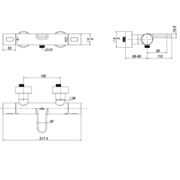 ✔ Thermostatic shower control valve for comfort and safety