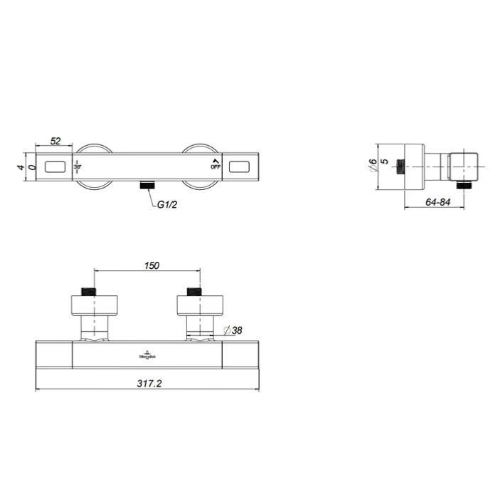 1. Description of Villeroy & Boch Universal Wall Mounted Square Thermostatic Shower Mixer Valve Chrome TVS00001800061: