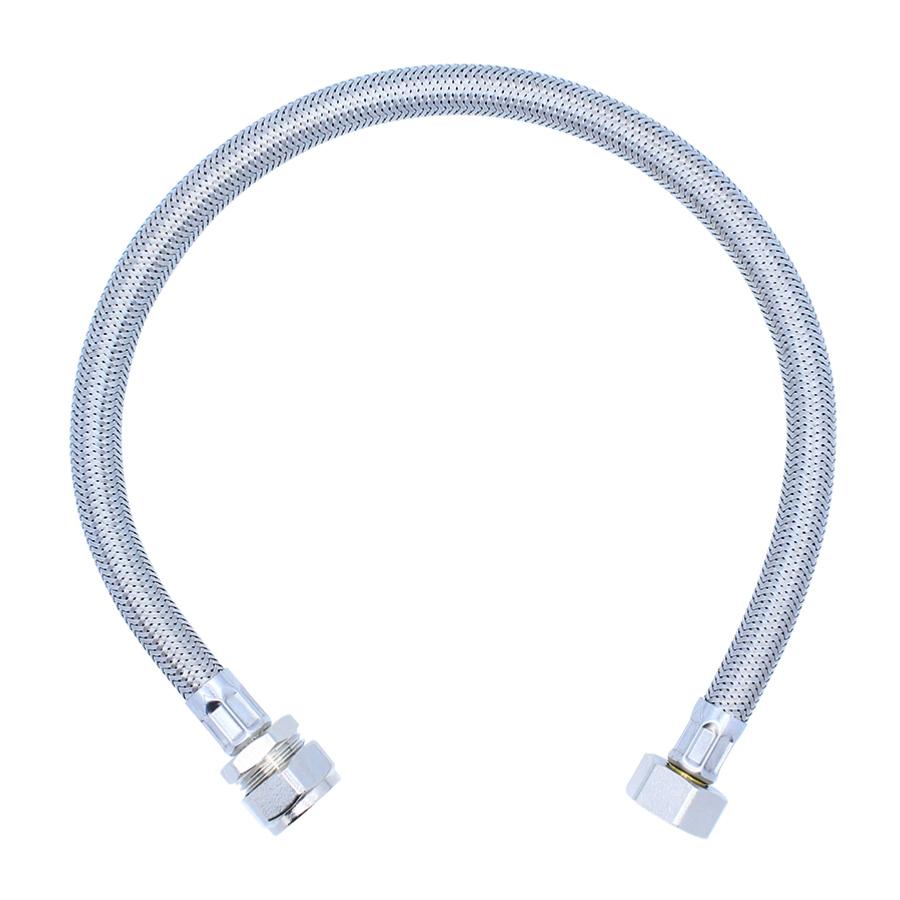 A 500mm long stainless steel industrial strength braided hose which is flexible and resistant to kinks and bends.