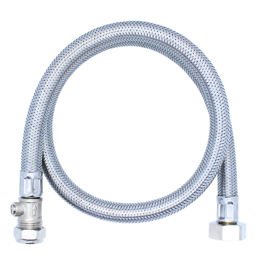 A 900mm long stainless steel braided flexible hose with a 15mm isolator compression fitting at one end and a 3/4" female bsp thread at the other end. This hose has a 10 bar working pressure and a working temperature from -5°C to 90°C.