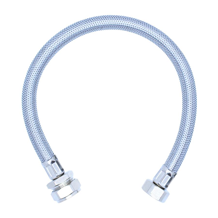A 500mm long stainless steel braided flexible hose with a 22mm compression fitting at one end and a 3/4" female bsp thread at the other end. This hose has a 10 bar working pressure and a working temperature from -5°C to 90°C.