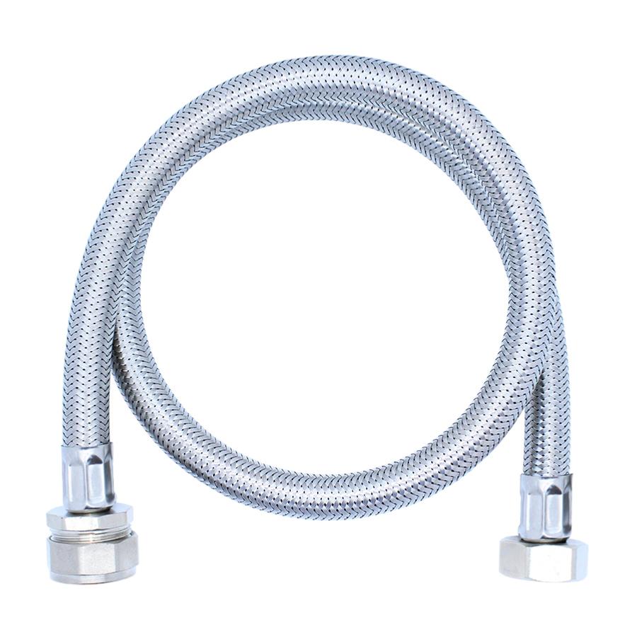 A 900mm long stainless steel braided flexible hose with a 22mm compression fitting at one end and a 3/4" female bsp thread at the other end. This hose has a 10 bar working pressure and a working temperature from -5°C to 90°C.
