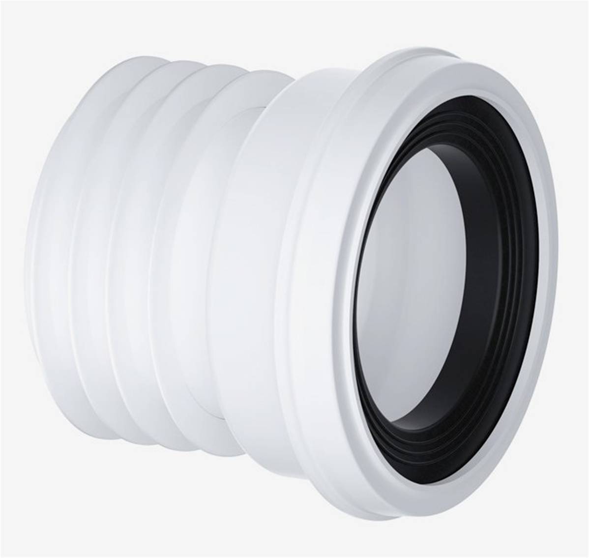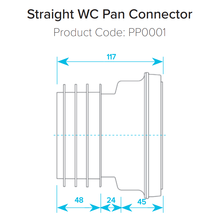 A straight rigid polypropylene WC pan connector designed for use with 4" (110mm) pipes.