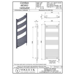1. Description of Vogue Combes 1400 x 600mm Curved Ladder Towel Rail - Heating Only (Chrome) MD063 MS14060CP: