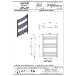 1. Description of Vogue Combes 800 x 600mm Curved Ladder Towel Rail - Heating Only (Chrome) MD063 MS08060CP: