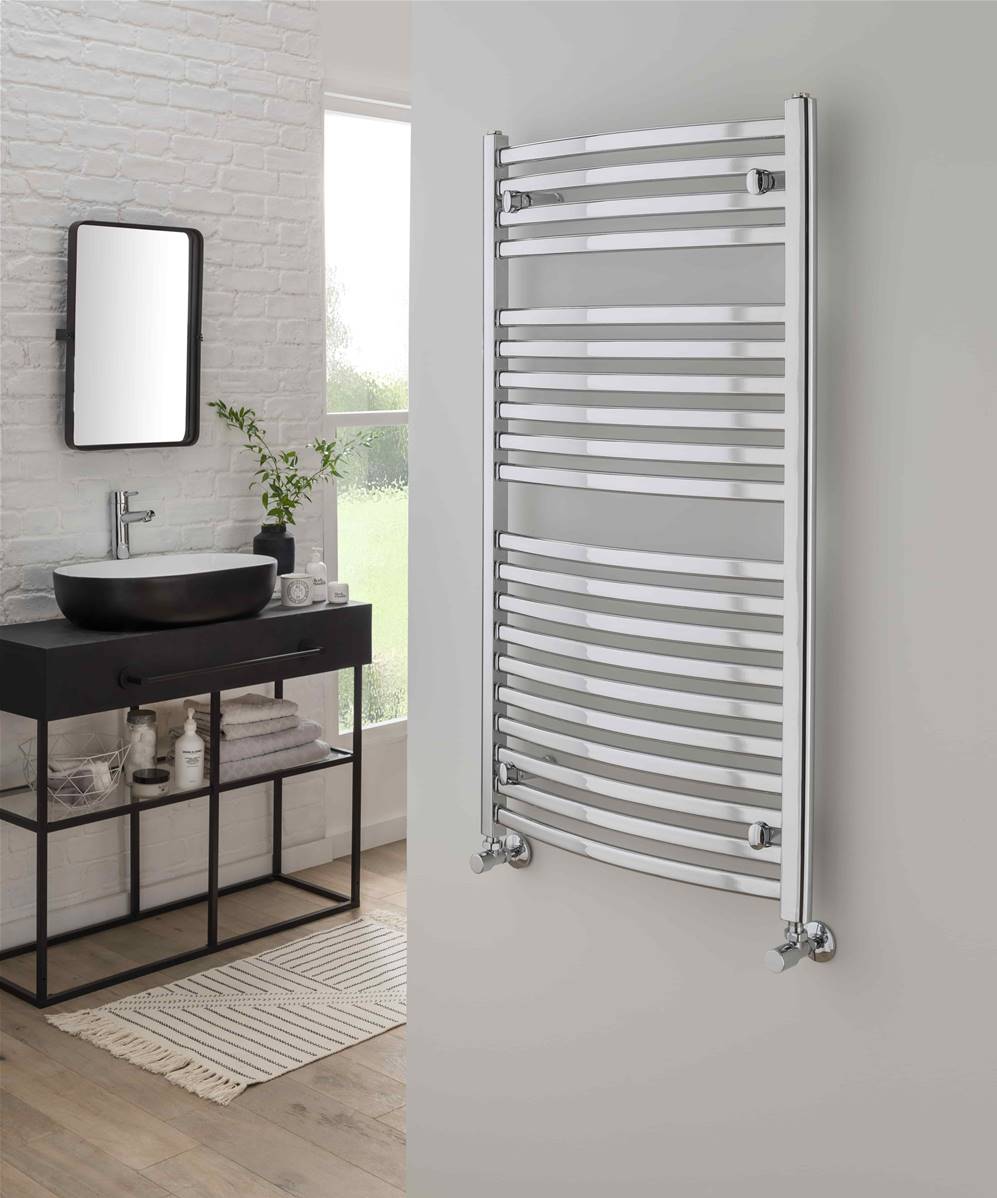 Curvee Contemporary Towel Warmer Curved Bars (50x80x9.6cm) Dual Energy Chrome. The Vogue Curvee is the perfect way to make your bathroom more exciting.