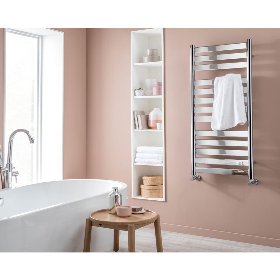 Vela Contemporary Rectangular Crossbars (50x130x10.1cm) Electric Only Chrome. This towel rail is a cross between the old-fashioned designs of yesteryear with modern touches.