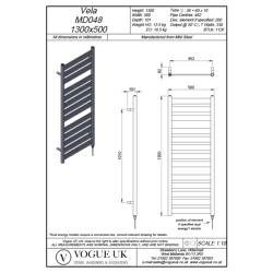 1. Description of Vogue Vela 1300 x 500mm Flat Crossbar Towel Rail - Heating Only (Chrome) MD048 MS1300500CP: