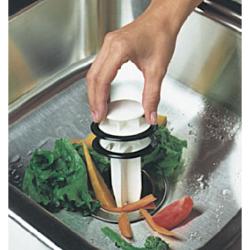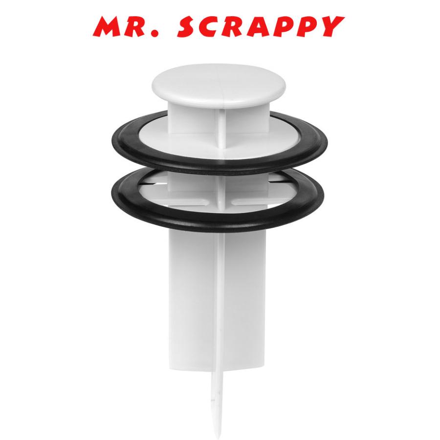 Mr. Scrappy is the sink stopper tool that is handy for a host of tasks like plunging food waste into your sink disposer, as well as scraping your leftovers on your plate, dishes or pans. The stopper also blocks your cutlery from falling through into your disposer.