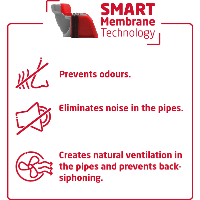 ✔ ANTI-ODOUR: Silicone membrane cartridge with external bi-injected washer guarantees a perfect seal. No more bad smells, no more pipe noises, no more back-siphoning.